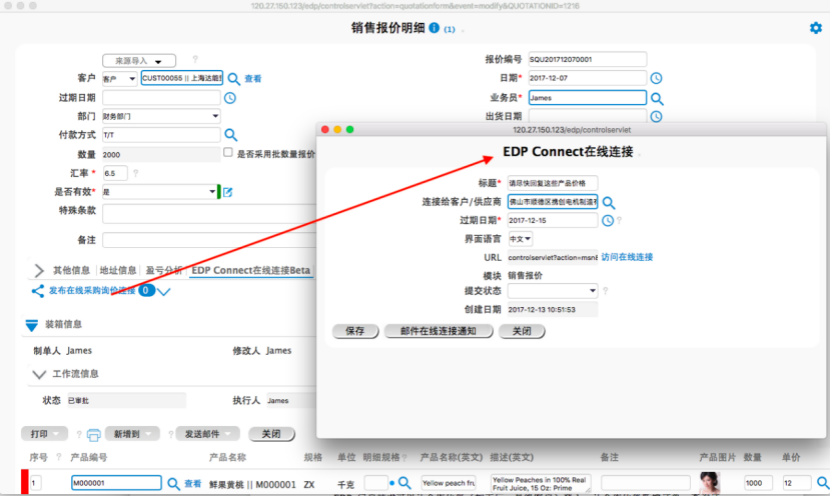 理泊软件的采购询盘Connect模块为外贸企业提供了便捷的采购单价在线收集功能,以下是对其便利之处的总结: 自动化数据收集:采购询盘Connect模块可以自动发送询价单给供应商,并收集他们的报价。这样可以减少人工干预,提高效率。 集中管理:所有的采购单价数据都可以集中在采购询盘Connect模块中进行管理,方便企业进行比较和分析。 实时更新:供应商报价可以实时更新到系统中,帮助企业了解市场行情,及时调整采购策略。 便捷沟通:采购询盘Connect模块提供了便捷的沟通平台,可以与供应商进行在线交流,减少沟通成本。 数据分析:采购询盘Connect模块还可以对采购单价数据进行分析,帮助企业找到最优的供应商和采购方案。 总的来说,采购询盘Connect模块,提升采购人员收集产品采购价格的效率。 采购询盘Connect演示视频实现步骤发布采购询价EDP CONNECT链接 在制作完销售报价后,如果业务人员不知道该产品的采购价格,就可以向供应商发出EDP Connect在线询价。 如果是由采购人员发出,就需要采购人员生成采购报价单,然后在采购报价单发出EDP Connect在线询价。